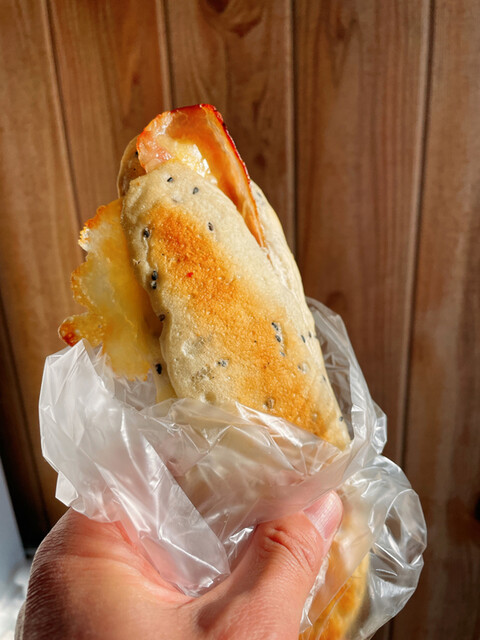 チーズとベーコン、生地には黒胡麻のシンプルなパニーニでしたが、美味しかったです(肝心の焼き目を写してない…)