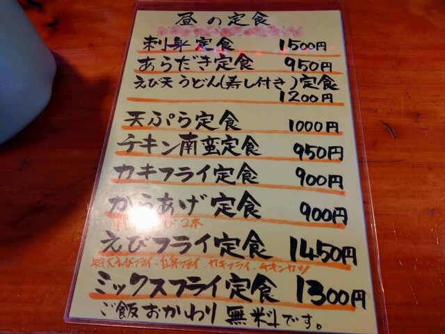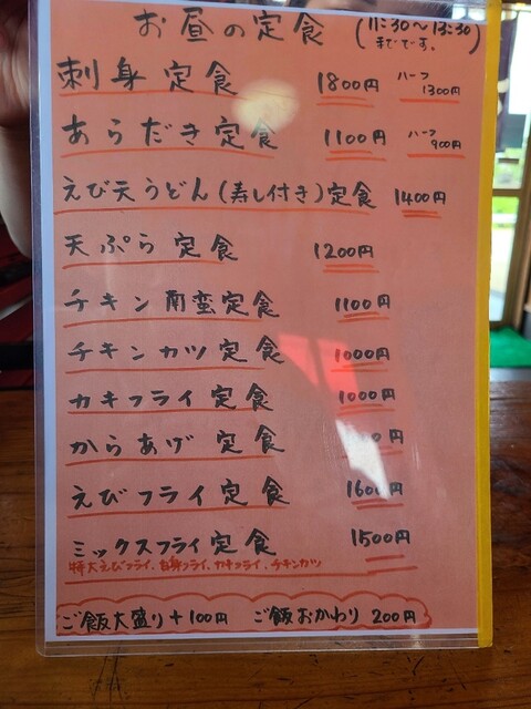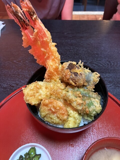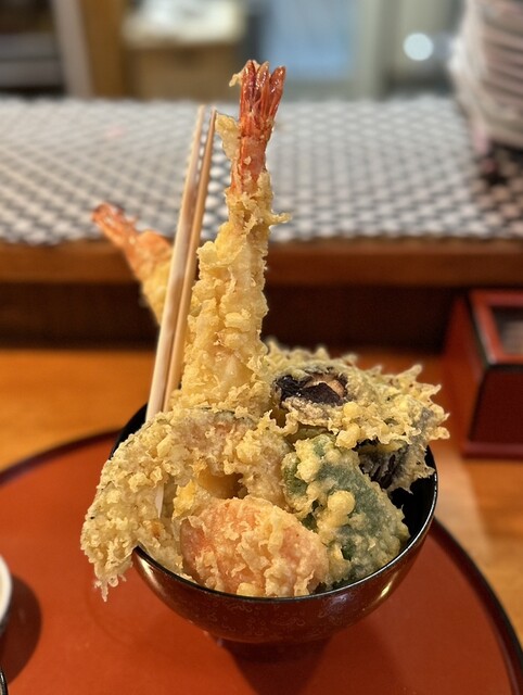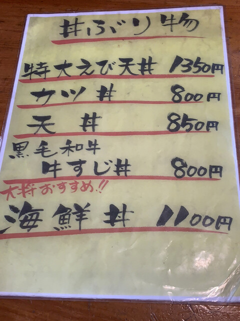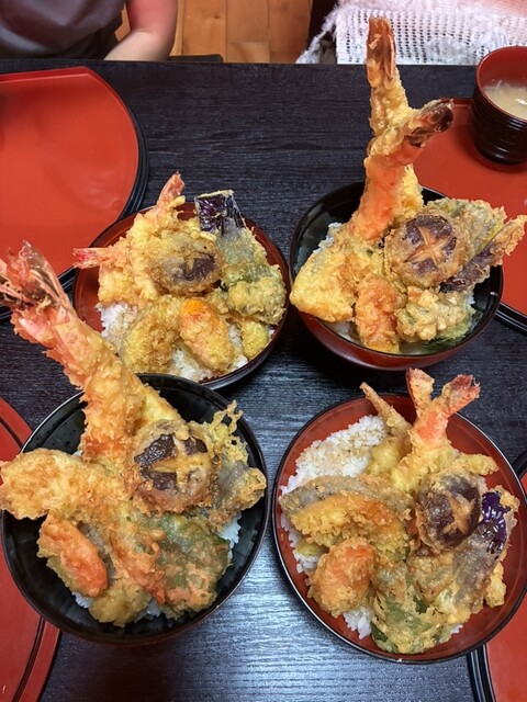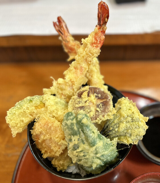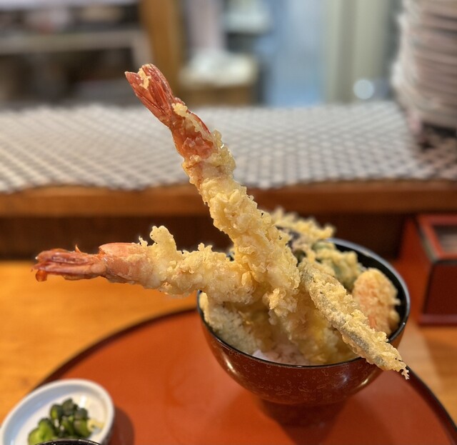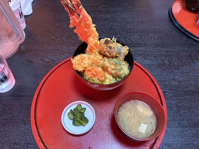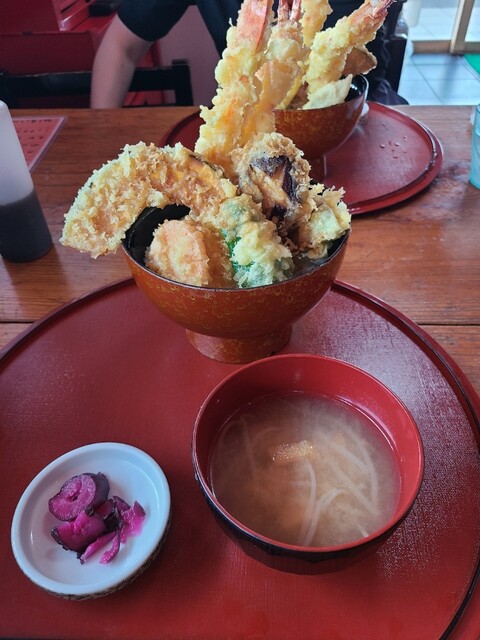 天ぷら定食を頼みましたが、メニューの裏面に天丼があったのですかさず特大えび天丼に変更しました。