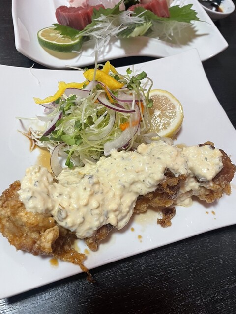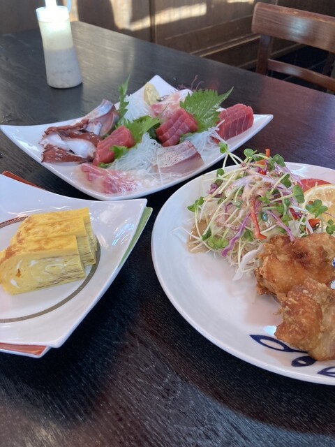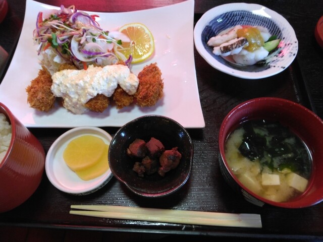 仕事で宮崎に来ています。帰る前にコチラの店で昼食をとりました。魚料理がメインのお店のようですが、肉系もありました。人気店のようでお客さんがいっぱいでした。写真のような料理を注文しましたが、待ち時間はあ...