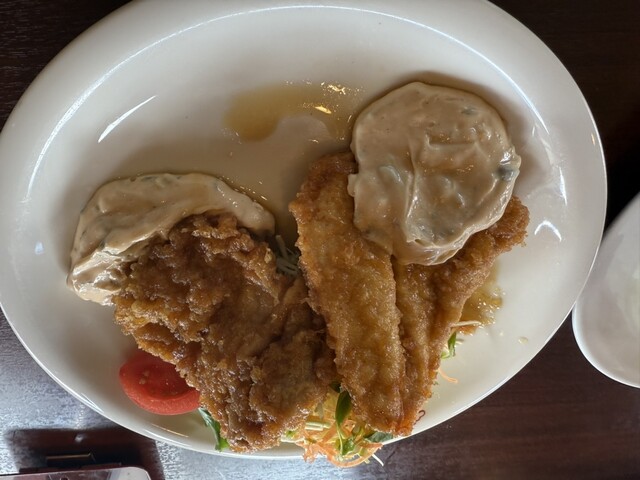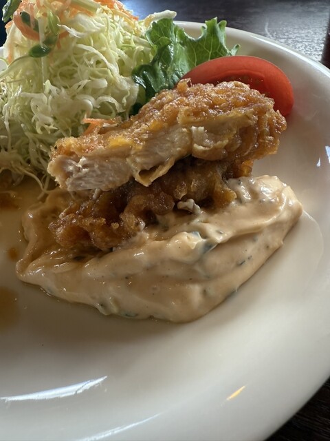 モモ肉の方は柔らかくてジューシーで美味しい。本来のムネ肉のチキン南蛮の方はモモ程ではない...