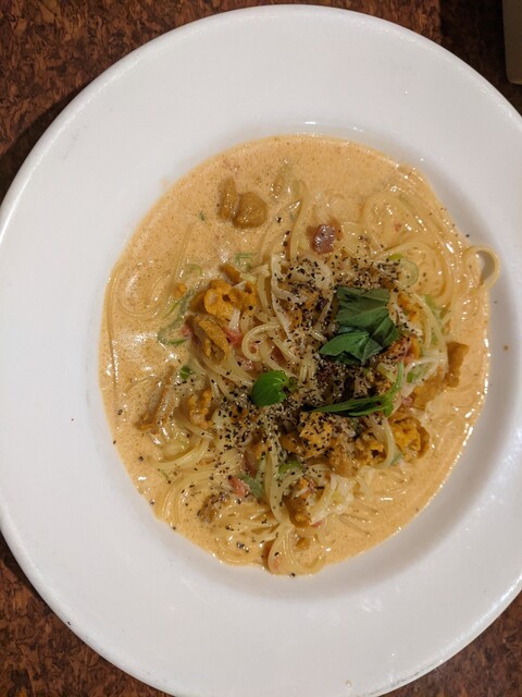ウニのクリームパスタ ペスカトーレ ミックスピザ をいただきました ウニタップリで臭みもなく食べやすい パスタは細めのものを使用 ペスカトーレは具沢山 トマトタ... 詳細を見る