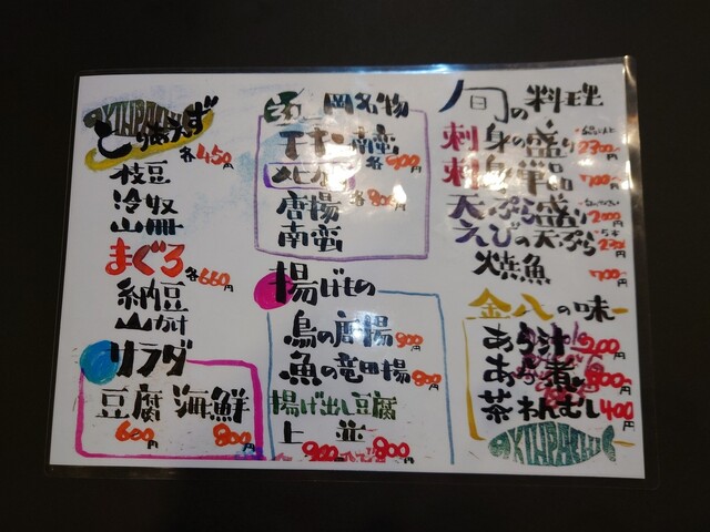 その日に仕入れた日豊海岸自慢のお魚、お寿司の他、延岡発祥のチキン南蛮やメヒカリ唐揚げなど金八自慢の御料理をご用意しております。