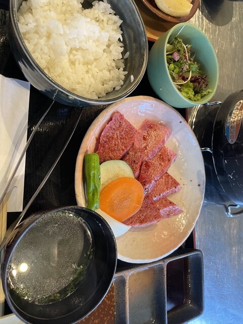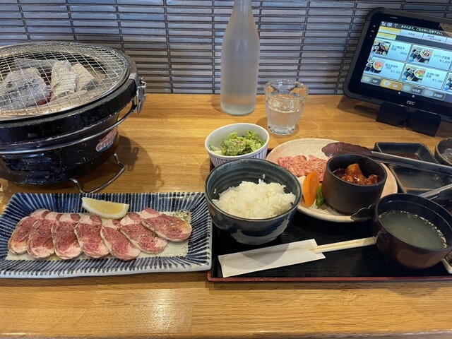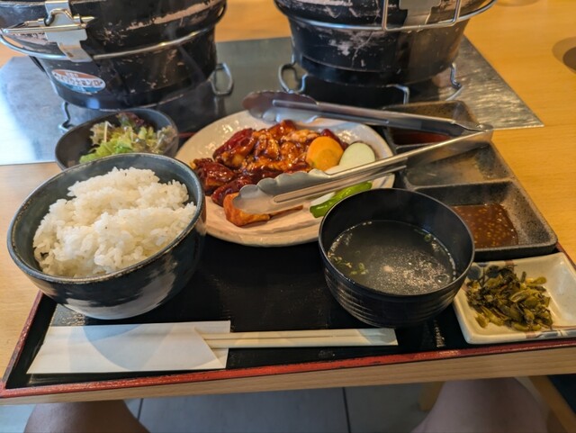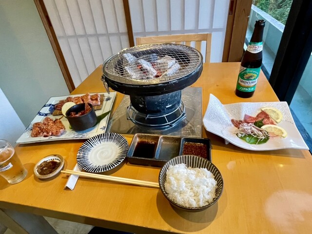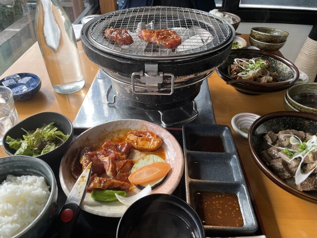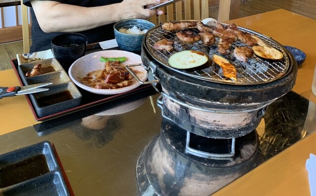 新しいのか綺麗なお店です。観光地にしてはかなり良心的なお値段です。炭火の七輪がテーブルにやってきて自分で焼く本格的なスタイル。ランチにしては珍しいです。