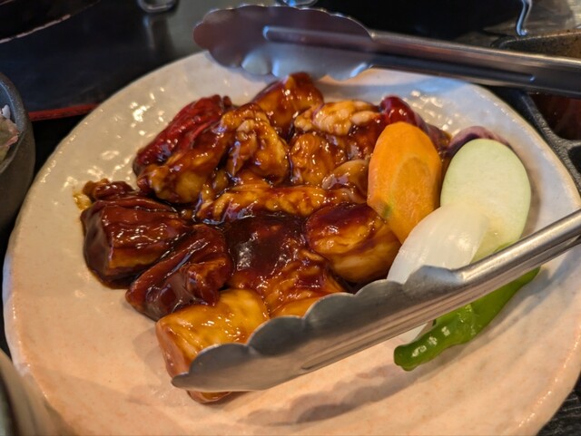 甘いタレが染み込んでいて美味しい。牛肉の甘い焼...