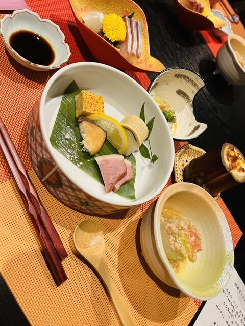 神無月、神の里、高千穂、神々は今は出雲にお隠れなのか。暖かい陽射しの中、高千穂峡の眞名井の滝を雫を浴びて間近で見る。今日の宿は高千穂神社の隣丘のこちらでお世話になる。住宅地の中に佇み、それぞれ独立して離れのような構成、僅か8室の隠れ宿。夕食は管理棟のレストランで頂く、ジャズが流れていてモダンな感じ、席に着くと、早速料理が運ばれる。一皿ずつ頂きたいところだが、テーブルの台の上に一気に料理が並べられる...