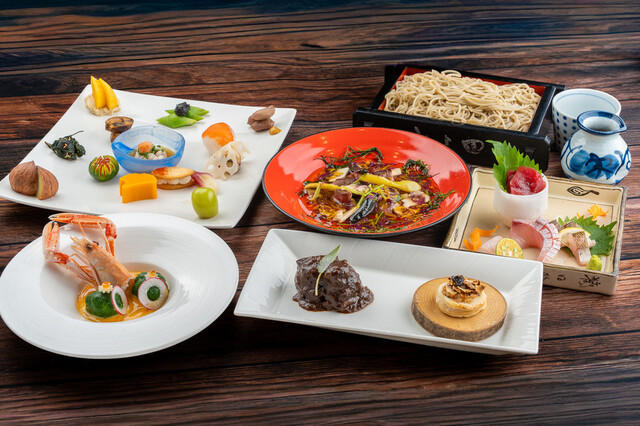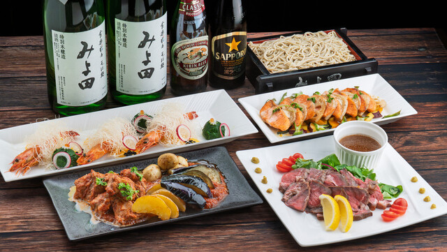 長野駅ビル内にある日穀製粉直営そば店。良質の蕎麦の実を丹念に自社製粉・自社製麺したこだわりそば「セイロ」680円や、長野の旬の野菜を使った「季節の天麩羅」780円、がっつり信州の味を堪能したいときは、そばと信州プレミアム牛がセットになった「信州プレミアム牛の味噌すき焼き御膳」1,320円など、どんな食欲にもお応えできるメニューをご用意しております。また、「信州の地酒」500円/杯も豊富にご用意して...おりますので、「野沢菜漬」300円や「やきみそ」380円を肴に一杯いかがでしょうか? カウンターはもちろんお座敷席もございます。こだわりの料理と共にゆったりおくつろぎのひと時をお過ごしください。
