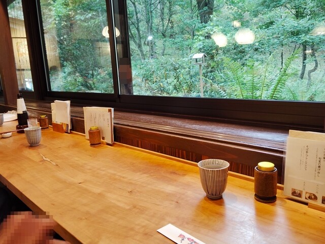 さすが戸隠の人気店。インバウンドも多し。国によって行動も違うネ。黙って待つのは日本人。色々観察しつつ待つこと30分でようやく呼ばれる。店内は広くてゆったりした造り。奥のカウンターに案内。隣に直前に呼ばれたあちらの国のカップルも座る。ずっとでっかい声で喋ってる(◎_◎;)何言ってるかはワカンナイけどとりあえずウルサイ。メニュー決まってたので先にオーダー!