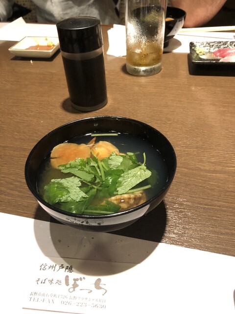 長野駅善光寺口から歩いてすぐ、長野プラザホテルの地下1階に店を構える「信州戸隠そば処ぼっち」さん。地下にありますが、暖簾をくぐると、外の賑やかさとは打って変わり、落ち着いたモダンな空間が広がっています。カウンター席とテーブル席があり、ひとりでも入りやすい雰囲気です。木を基調とした内装と静かなジャズが流れ、心落ち着く時間が過ごせました。店員さんの接客は丁寧で、好感が持てます。
