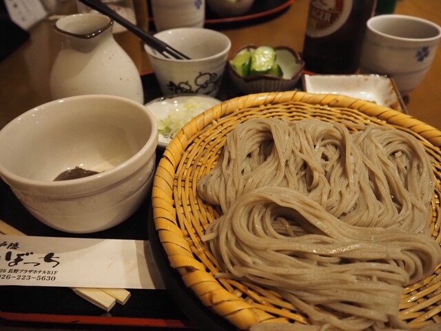 長野駅前で味わえる本格手打ちそば。ざるそば(並)980円~とお得なセットメニューが好評!