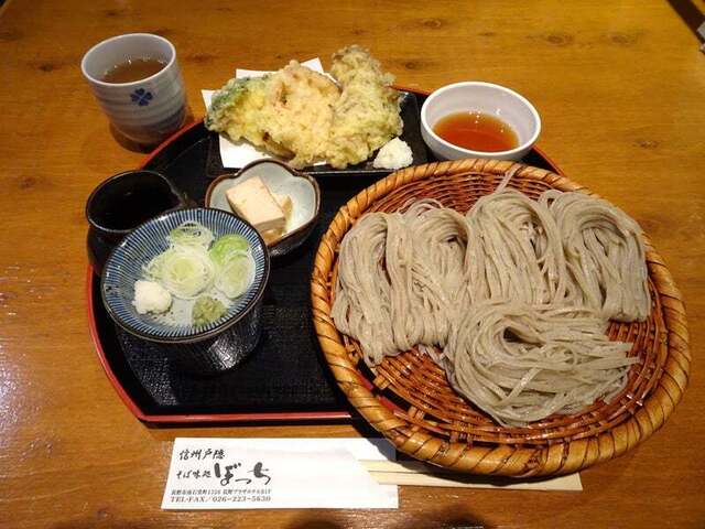 戸隠出身の店主が丹精込めて打つそば処。戸隠そばの特徴である「ぼっち盛り」でご提供。
