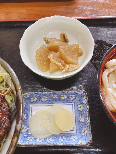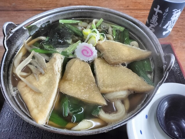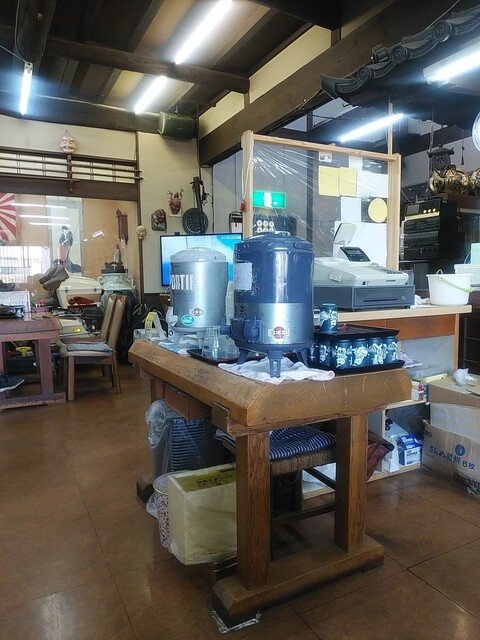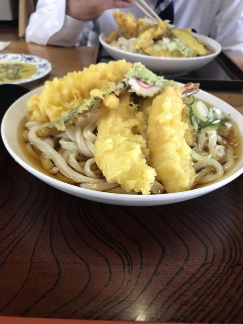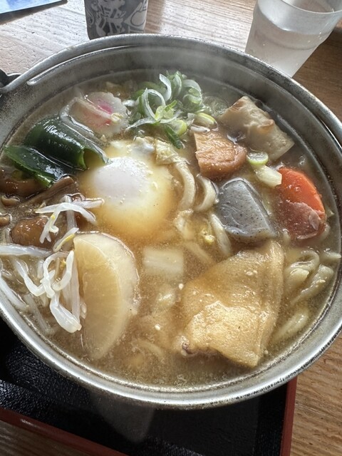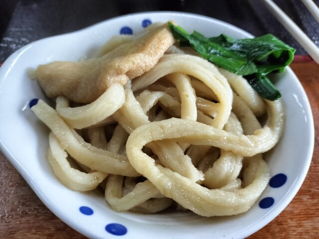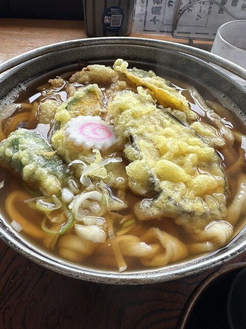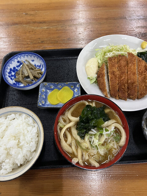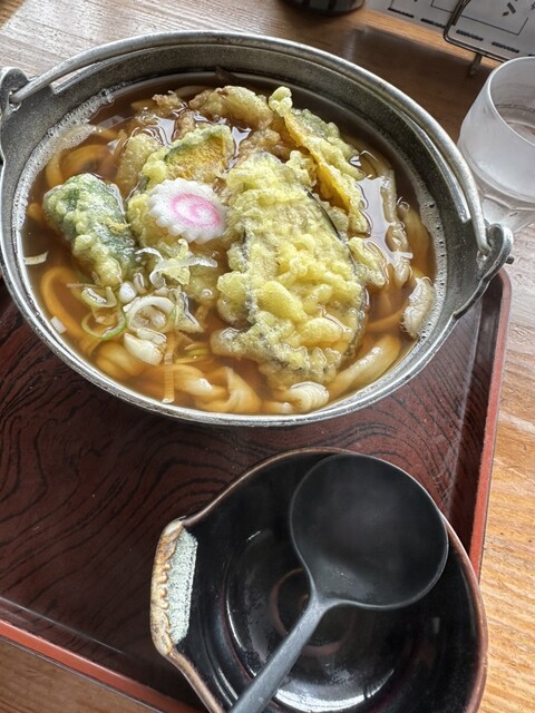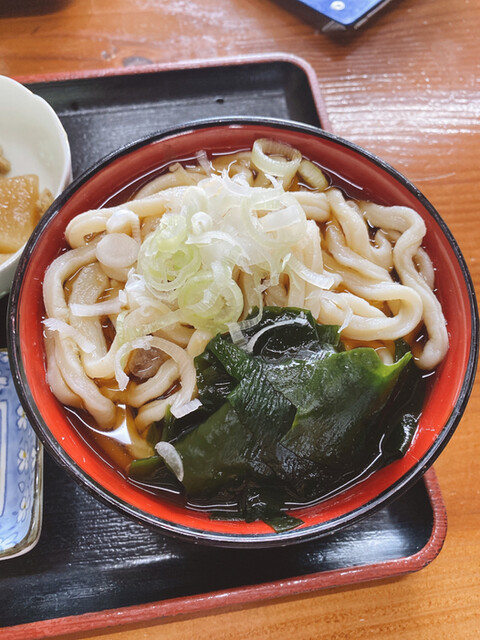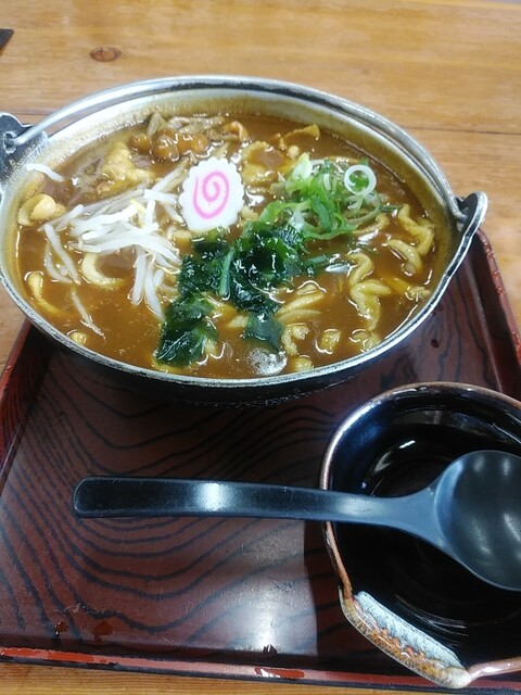駐車場は店舗の前以外に横、裏にも完備していました。店舗横に停車してから入店しました。時間は一時半位ですがほぼ埋まっていて繁盛しています。奥のテーブル席に案内されてお茶はセルフサービスとなります。今回のオーダーは鳥唐揚げセットと迷った挙句にカレーうどんをセレクトしました。嫁さんは冷やしぶっかけの小をセレクトしました。温かいメニューは...