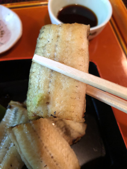 隠れ家的お店。うなぎのフルコースを出してくれるお店で、うざくや柳川鍋、白焼など様々な料理で堪能できる。うなぎのクオリティで言えばやや小ぶりなようにも思えるが、このような楽しませ方は他には無いだろう。店の景観などにも気を遣っているようで、好印象。