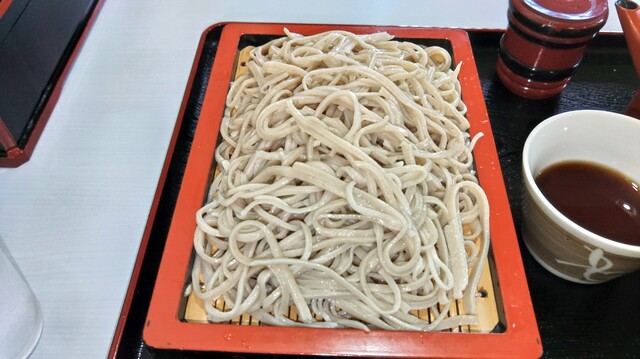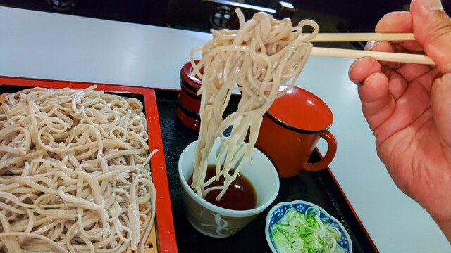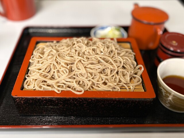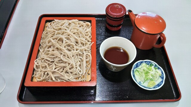 店内のテーブル席に着き、650円のもりそばをお願い...
