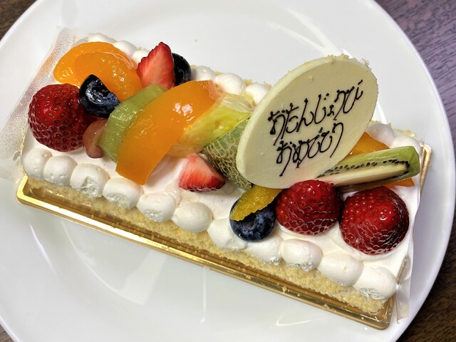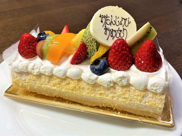 上にのっているフルーツに違いはあれど、家族皆このお店の生クリームが大好きですし、生地もふわふわで、美味しいケーキです。