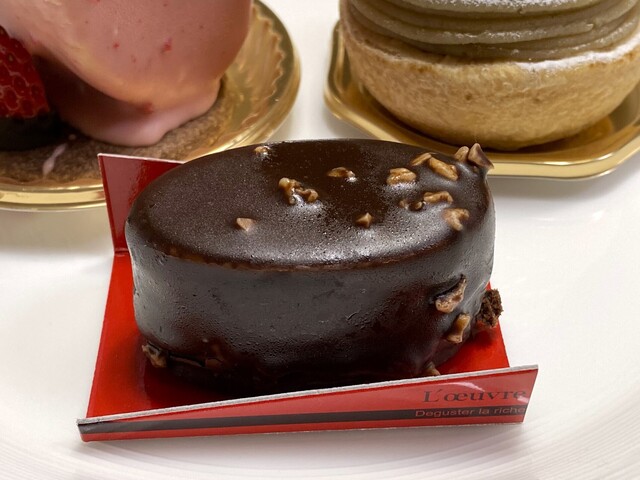 トゥーショコラは上にのったナッツの風味のほかは、チョコレート中心の味わい深いケーキです。