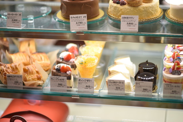 お店をのぞいてみると、いつものようにカラフルでおいしそうなケーキがならんでいます。