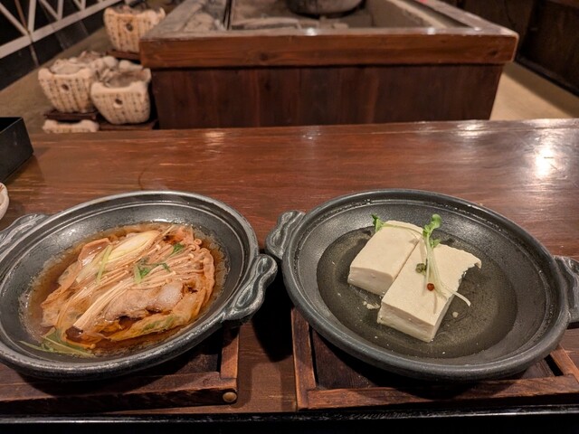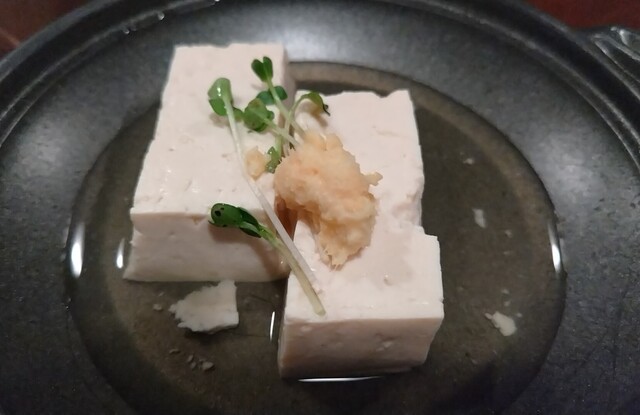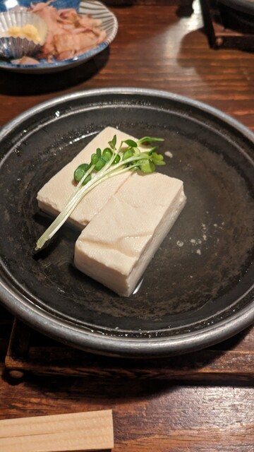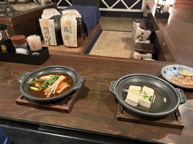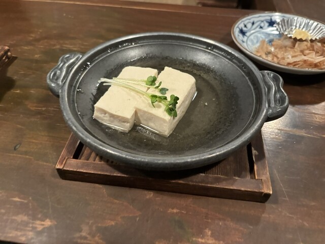 お通しはすき焼きと白出汁豆腐