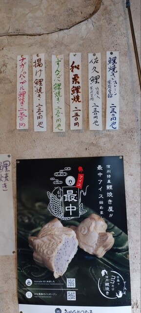 名物は 鯉焼き、鯉の最中アイス。香ばしい最中の皮にひんやり滑らかなアイスがたっぷりで、鯉の形も愛らしく、見た目と味の両方で楽しめます。さらに 鯉焼きプレーンは、甘さ控えめで上品なあんこが香ばしいもっち...