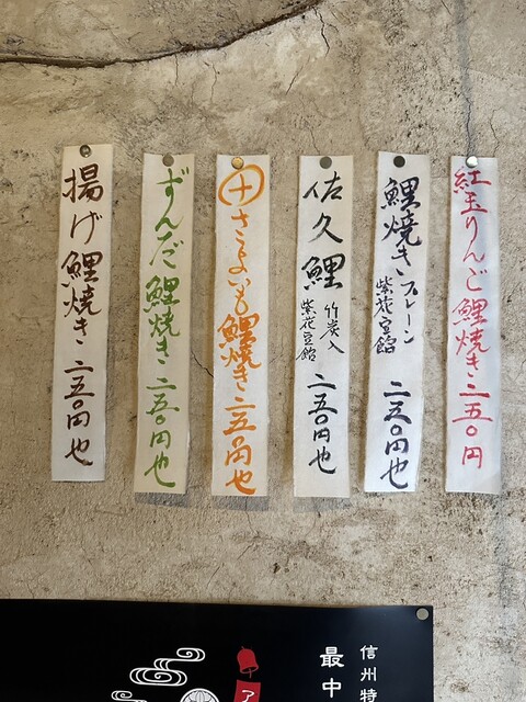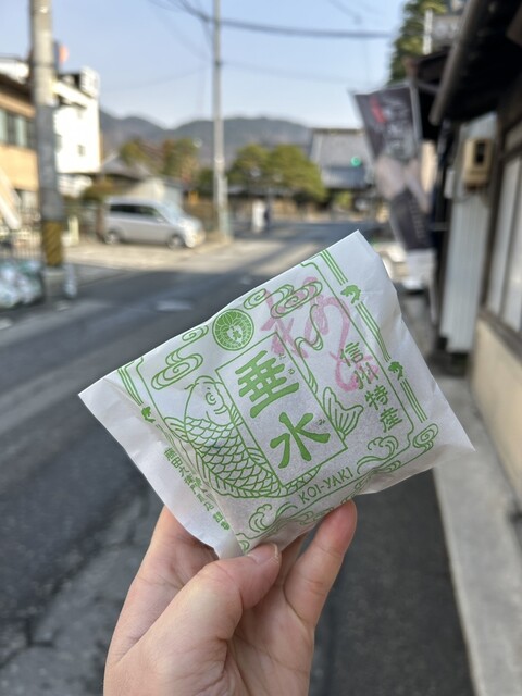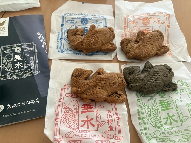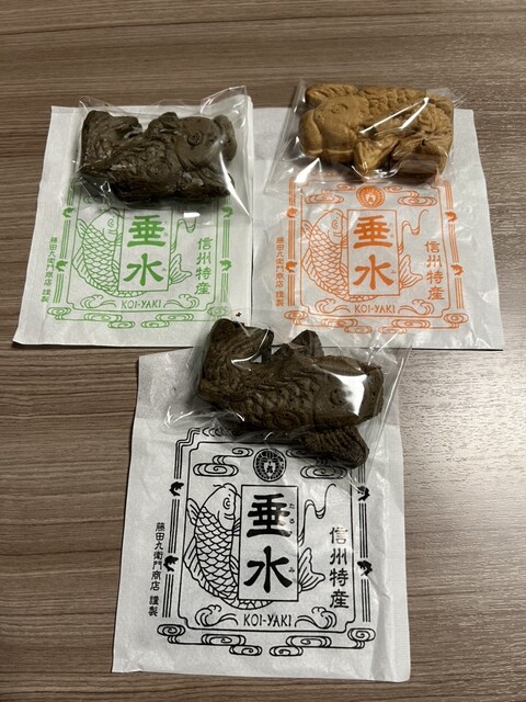 たい焼きならぬ鯉焼きがあるお店で出来たではなく袋に入った状態で売ってます。