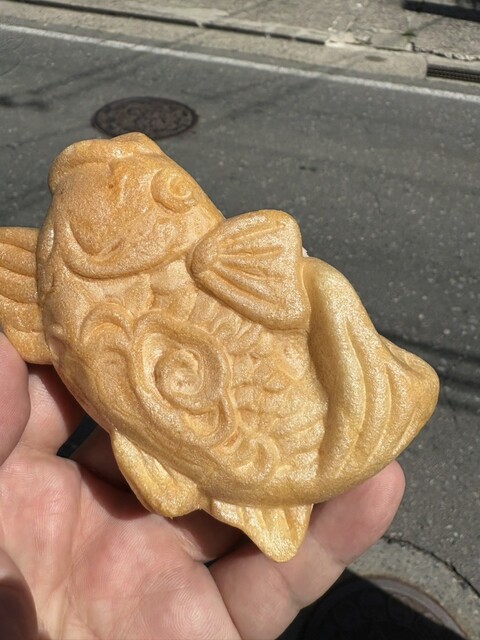 鯛焼きと比べて見た目に躍動感があって面白いです、つい買ってしまいました笑