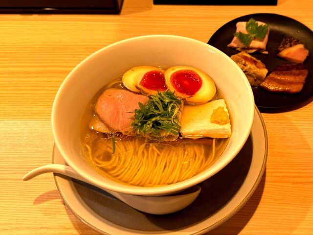 木曜日の12時20分ごろ訪問!! 行列が4人ほど! 20分ほど待ち店内へ! 食べログ評価『3.71』 2018年、2024年に百名店選出! これは期待値高まるね! 注文は特製中華そば1,350円! 追加で和牛お肉ご飯900円! スープは大量の鶏ガラ、鴨ガラを丁寧に煮出... 詳細を見る
