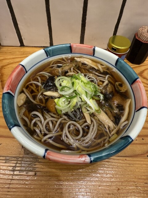* ツユ: やや甘めで濃いめの出汁が特徴。カツオの風味と醤油の香りが食欲をそそり、寒い日には体に染み渡るような優しい味わいです。この濃いめのツユが、きのこやそばと絶妙にマッチします。