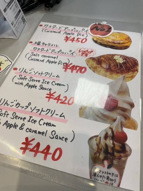 アップルパイが基本のメニューなんだけど、限定メニューもいろいろと用意されている。店頭で食べて行くこともできるので、さっと食べて行く。