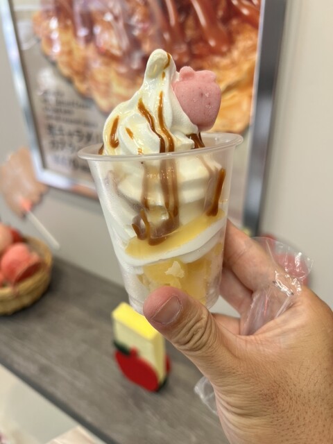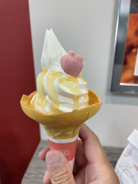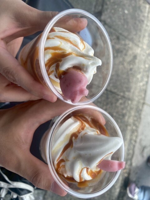 ソフトクリームの上にりんごソースがかかっており、これはこれで美味しいのですが、カップの底に並べられているフローズ...