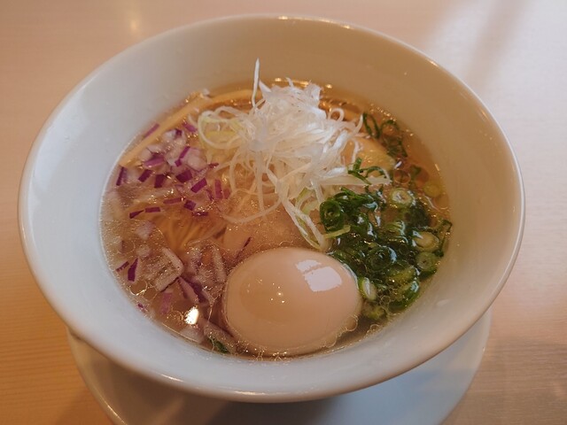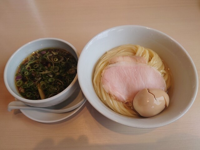 スープには甘味とコクがあり、細麺とのバランスにも優れており、美味。