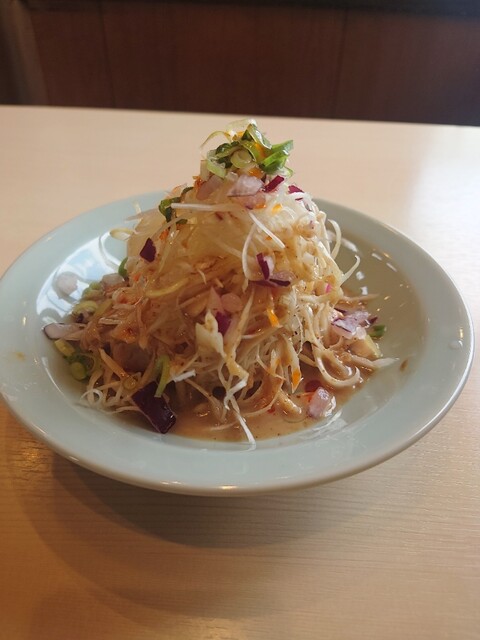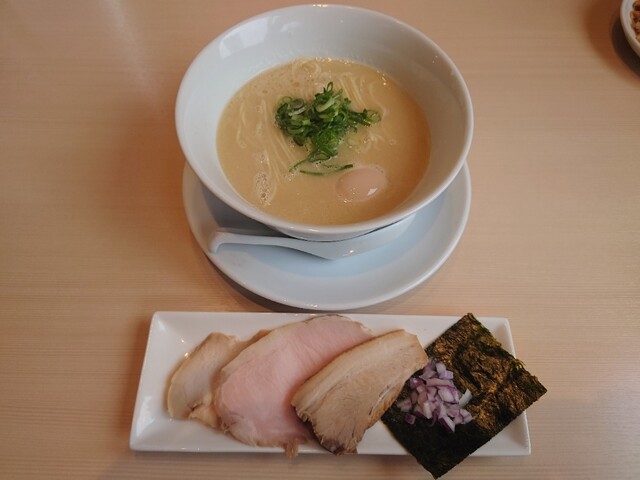 チャーシューはやや淡白であり、個人的にはもう少しジューシーな方が好みだが、スープとの相性は良く、悪くない。