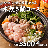 【水炊き鍋】箸で食べる焼き鳥・お造り2種・水炊き鍋など!全8品 セルフ2.5H飲み放題 3500円8品