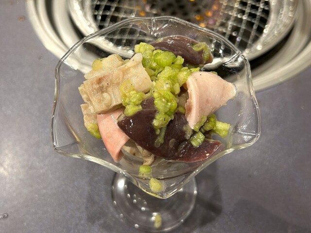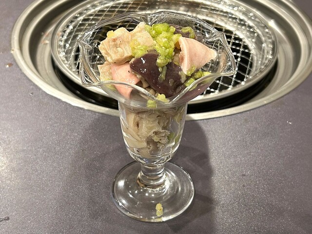 パフェグラスにホルモンがぎっしり!名物ホルモンパフェは必食◎