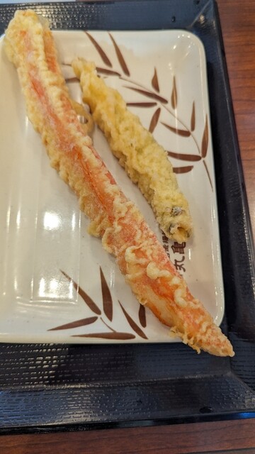 お店前におすすめメニューの表示 メニューは各種うどん…他 かけうどんとてんぷらをオーダー かけうどんとてんぷら 天ぷらはかしわ天とジャンボカニカマです うどんはやわや... 詳細を見る