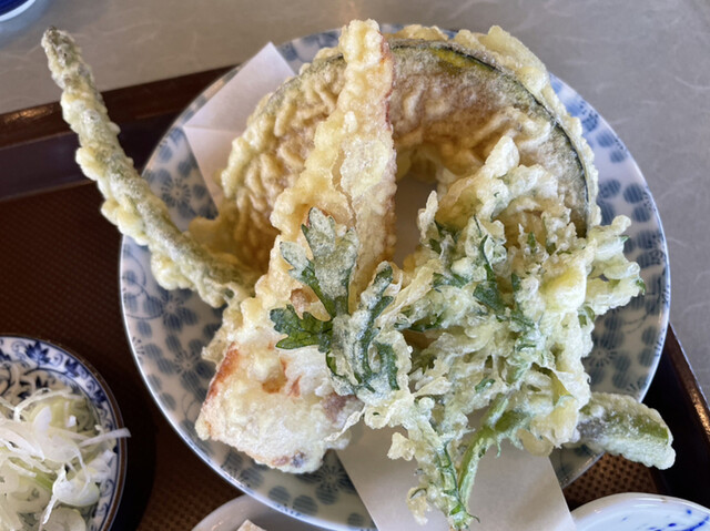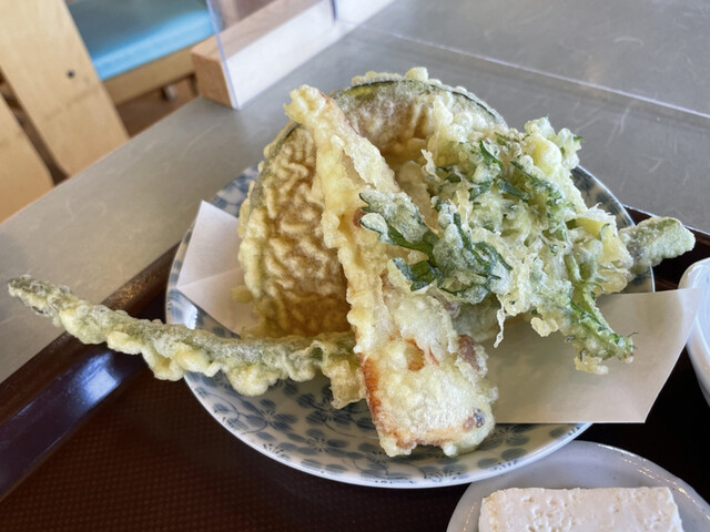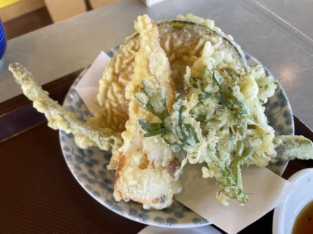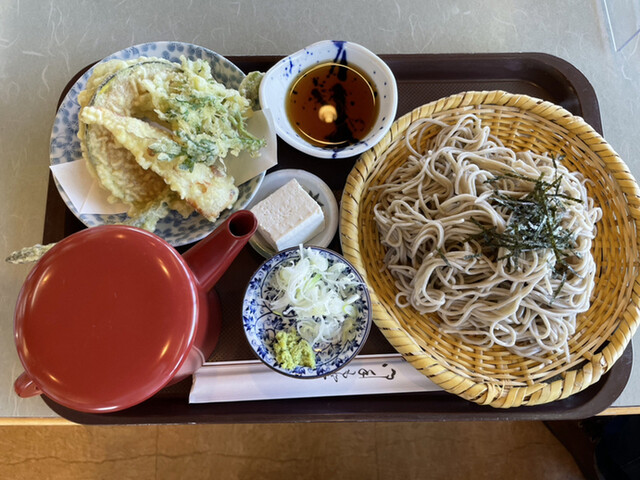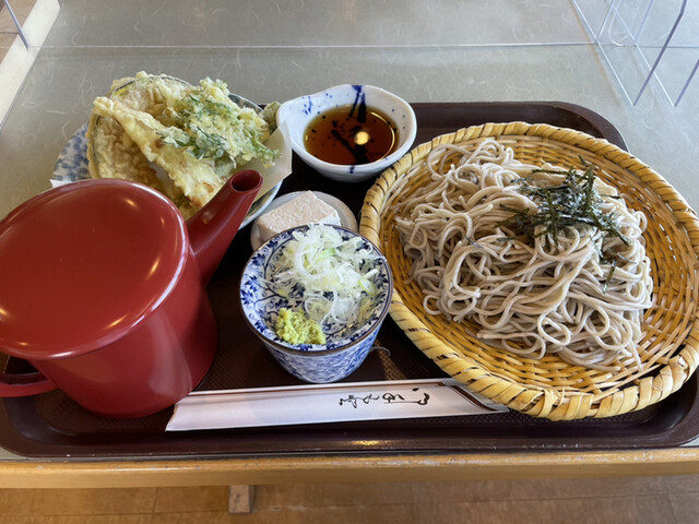 湯田中温泉へ向かう途中のお昼ご飯。 この付近のお蕎麦屋を調べましたが曜日で定休日が多く、口コミの良かったこちらへ。 天ざる蕎麦 食券を買い、眺めの良い席へ 志賀高原が一望できて、ロケーション良いです 15分ほどして呼ばれます 地元野菜でとれた大きな天ぷら盛り合わせ ちくわ天とエゴマの... 詳細を見る