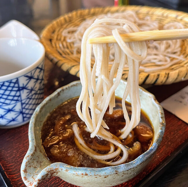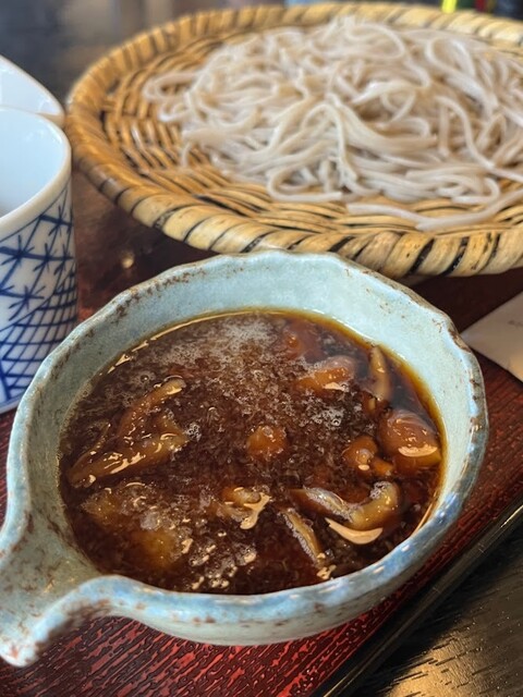 そばはうっすら白めで細く、つるつると啜って、ごちそうさま。可もなく不可もなく。他にもいい店ないか探します、