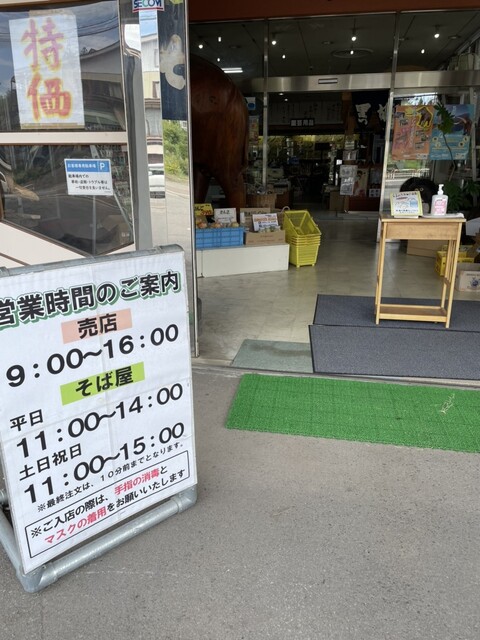 物産センターは店内が古いやや暗い。 そして地下に蕎麦屋があるらしい。 階段を降りると暗い、、お店あるの?と思うくらい。 奥にありました。 自販機で購入。安い!! ... 詳細を見る