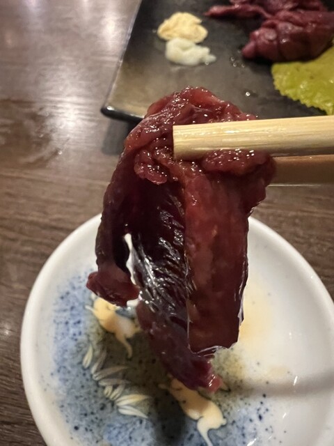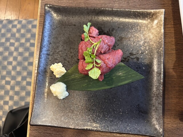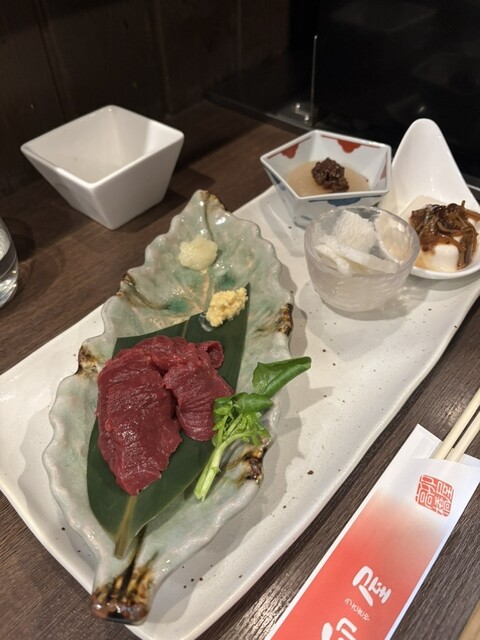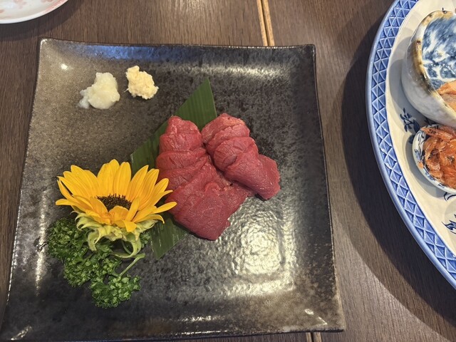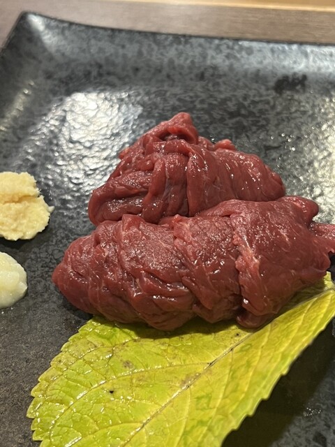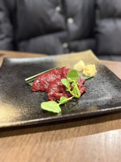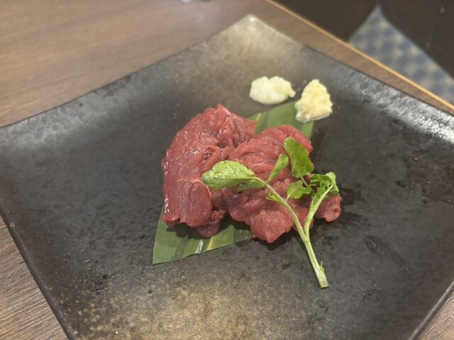 馬刺しはハーフもできるとのことで、ハーフにしました。チェーン店の居酒屋だと、馬刺しは弾力がある感じですが、ここのは柔らかくて、よく伸びます。新...