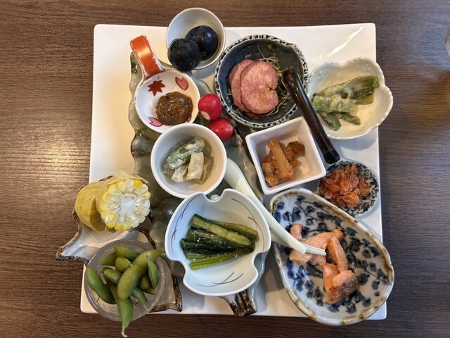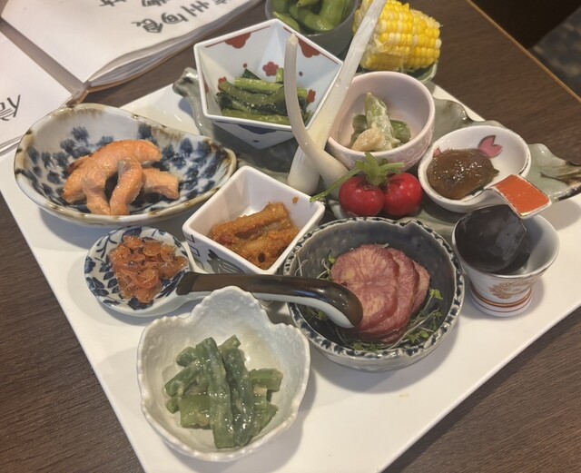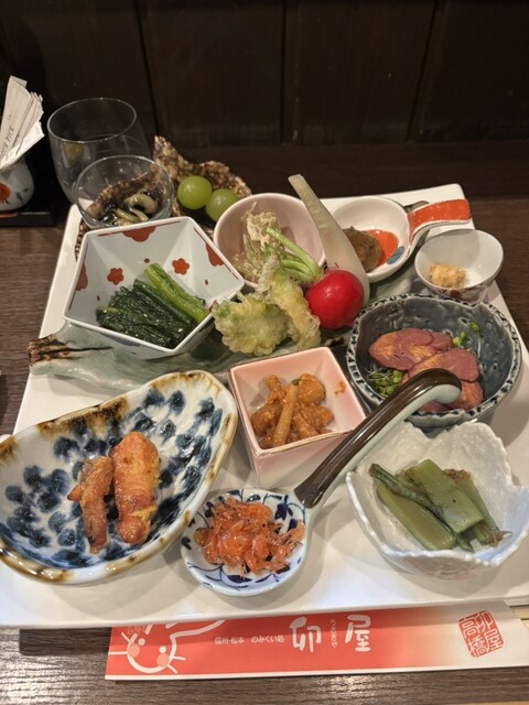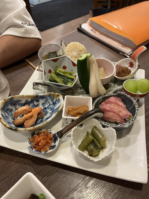 お通しの山菜のお浸しから、馬肉ユッケ、朝採れキノコのバター焼き等…どれも美味しかったです!