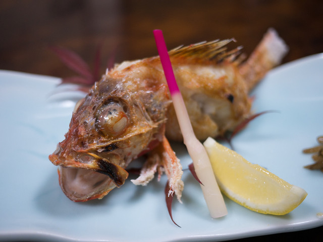 松本城から歩いて数分。風情ある外観の日本料理の百名店です。L字カウンターに飾られた生花など高級料亭の雰囲気。海なし県でありながら魚料理が中心で、信州の郷土料理もあります。