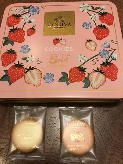 松本市内のPARCO内にある【GODIVA】さんで50周年缶に入った特別記念の『クッキーアソートメント』を購入 イチゴ味とホワイトチョコ味の2種類だ 上品な甘さで... 詳細を見る