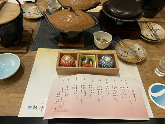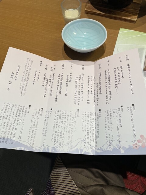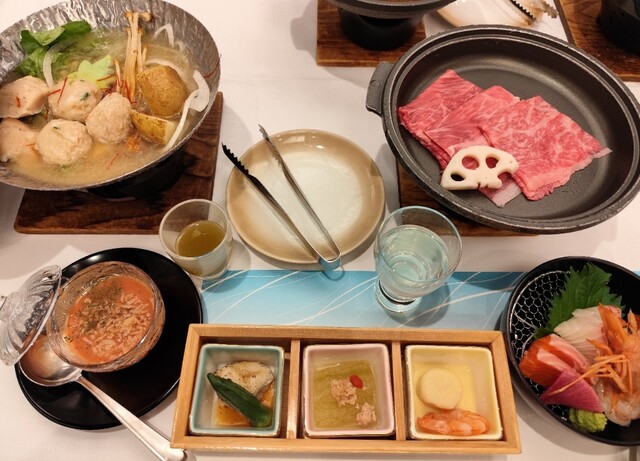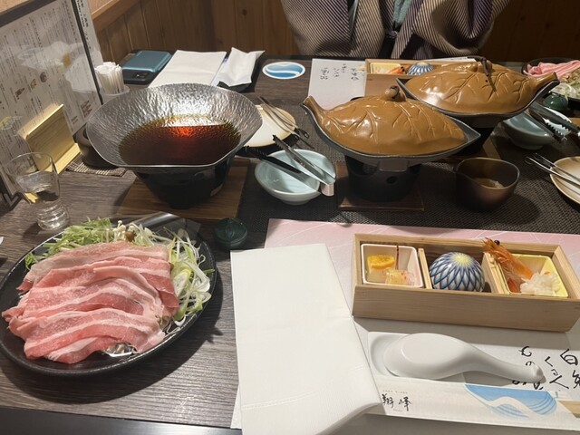 信州豚のしゃぶしゃぶは甘みがすごく美味しい。ご飯は炊き込みご飯。デザートはりんごメイン。食前酒はノンアルコールの梨風味のもの。一般的に満足する会席料理。焼きしゃぶもあり。信州サーモンは味がよくわからず...