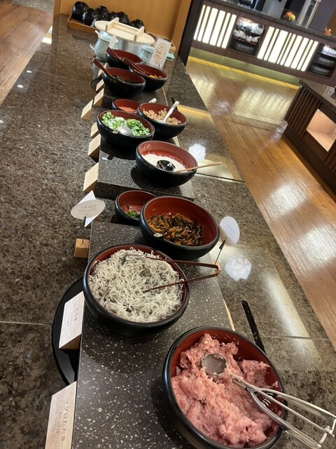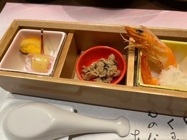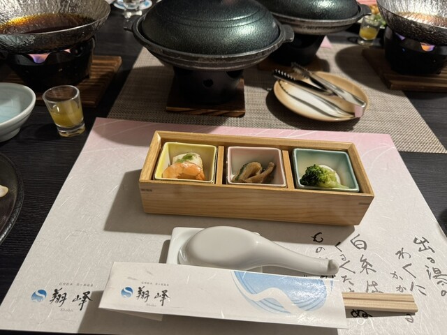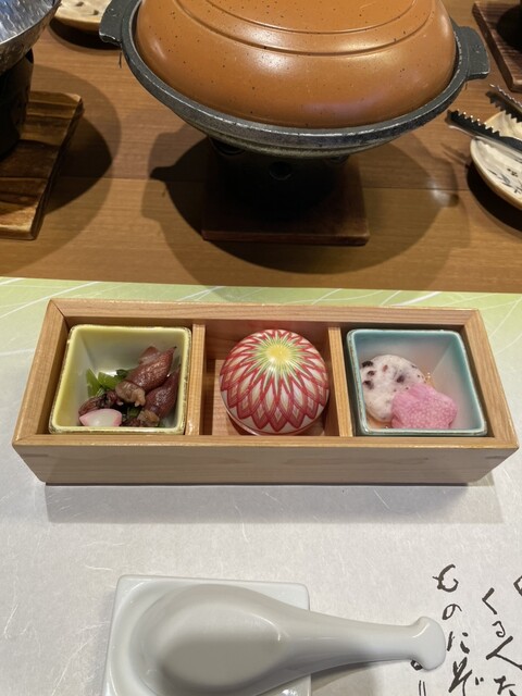 お料理は夜は懐石、朝はブッフェでした。どちらもこの土地でこそ食べられるものがちゃんとあっておいしかったです。夜の懐石料理はどれも丁寧に作ってあって、質も量も満足です。春を感じるものがちゃんとあっておし...