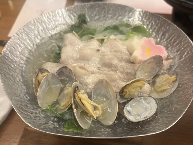 松本市内が見渡せるホテルで鮑と河豚、信州豚蕎麦つゆしゃぶしゃぶをいただく