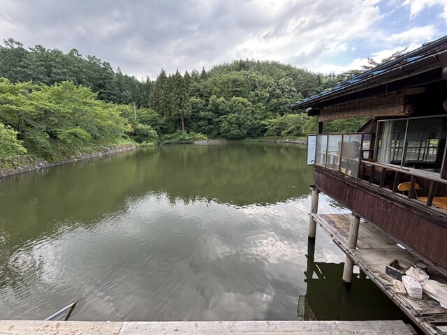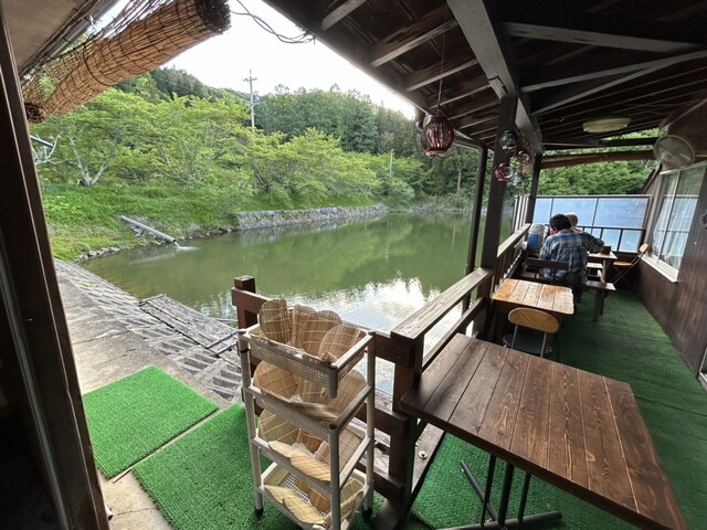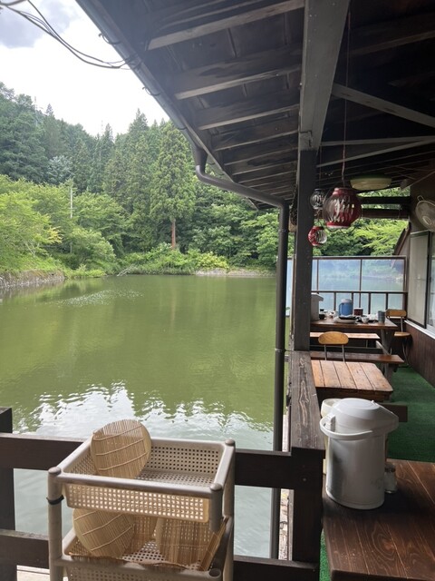 溜池の畔というより水上に張り出したボートハウスみたいな怪しい作りの店舗。おじいさんと息子と孫、という様子の3人で切り盛りしている。祝日なのに手伝い偉い孫。