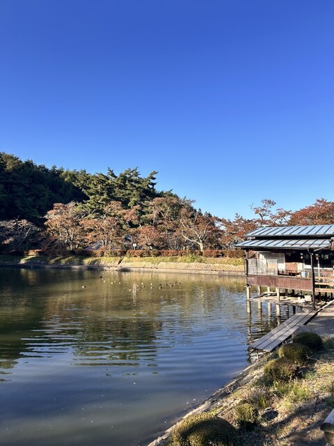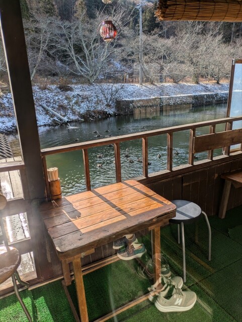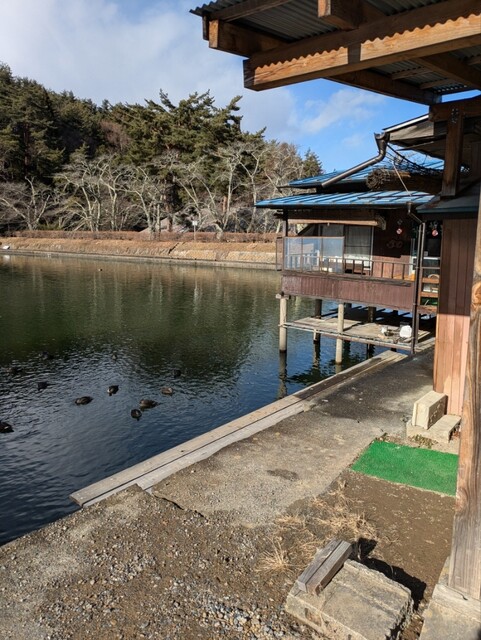 カモさんが追いかけっこをするほど優雅な池を横目に外でも中でもお蕎麦をすすれ...