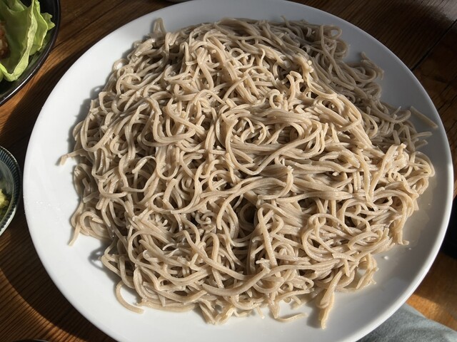北アルプスに登った帰り、何か食べようと探して訪問。松本や安曇野のお蕎麦屋さんは14時まで終わるところが多く、下山して帰宅途中だと閉店していて登山との相性が悪い。