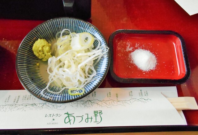 純手打ち地粉そば・信州サーモン丼・創作料理“岩魚石焼ひつまぶし”他信州ご当地食材メニューを召上っていただけます。自慢の純手打ちそばは、石臼挽きの地粉を打立て茹立て締立てでお出しする、こだわりぬいた逸品です。のどごし薫り高さが自慢です。ニ階には一日一組限定の予約専用スペースあり、北アルプスを眺望しながら、ご当地御膳を楽しんでいただけます。予約は3日前まで。予約は「梓川sa㊦展望席ご予約」で検索を。