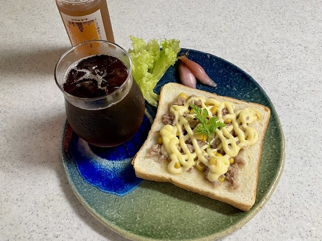 食パンにバターを塗りコーンツナとマヨネーズをのせ