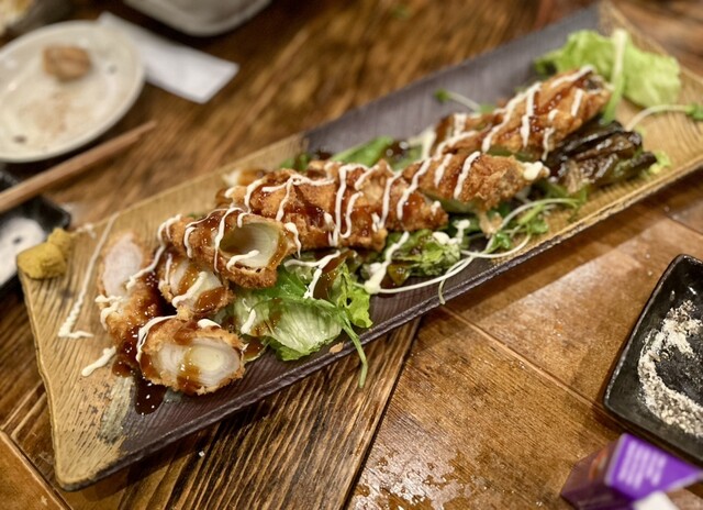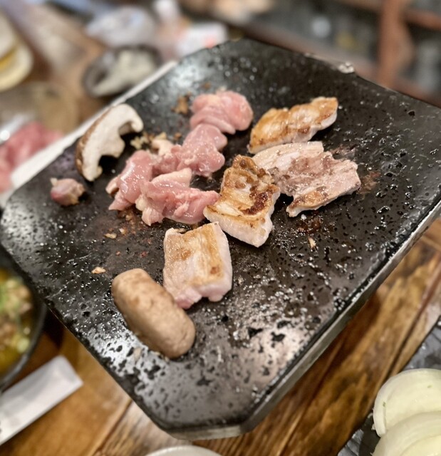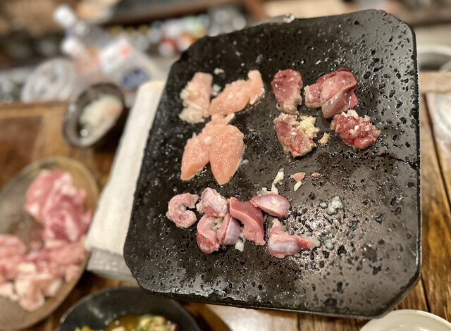 松本市の駅前にあります。 店内は落ち着いてて、シックな雰囲気です。 こちらの売りは、長野県の地鶏の様々な部位を溶岩焼きというスタイルで、石の上でじっくり焼くスタイルで食べます。 鳥のいろんな部位と、牛も豚もあります。 割とじっくり焼くので時間が普通の焼肉よりはかかりますが、じっくり焼かれた鶏はふっくらしてて、旨みを閉じ込めた感じがして美味しいと思いました。 塩、塩胡椒、あとはお店特製のタ... 詳細を見る