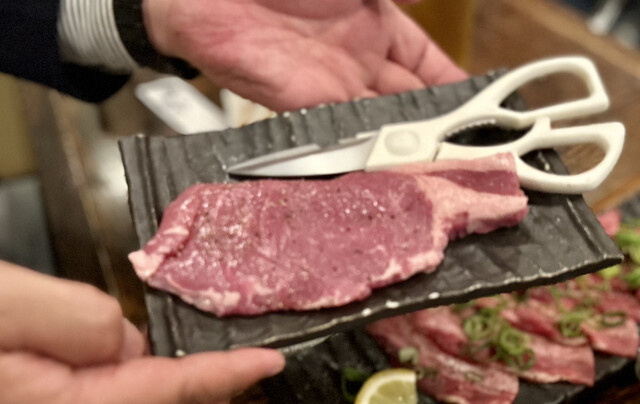 最初にステーキ肉を焼いて皆んなで切り分けましたが見た目のインパクトもあり盛り上がりました。